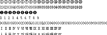 丸付き数字、括弧付き数字・英字、ローマ数字 など